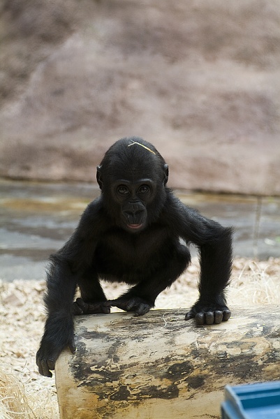 Gorilí mládě v jednom roce života zpravidla nedosahuje váhy stejně starého dítěte. Ovšem i když je více než o polovinu lehčí, svými projevy ho ve většině projevů předčí. Můžeme to dobře vidět na roční Moje. Ta poměrně bezpečně a dobře chodí (občasné střemhlavé pády na tom nic nemění), šplhá, podniká krkolomné výpravy po konstrukcích z klacků či sítích z provazů.