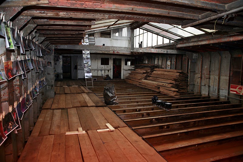 Plavidlo zakoupili mladí nadšenci zhruba před půl rokem - starý vlečný člun z roku 1925. Poté ho vlastními silami vyčistili a upravili jako provizorní místo setkávání. V budoucnu na něm má vzniknout víceúčelový sál pro 200 lidí a nad ním další dvě kryté paluby, říká jeden z dobrovolníků Petr Klimeš.