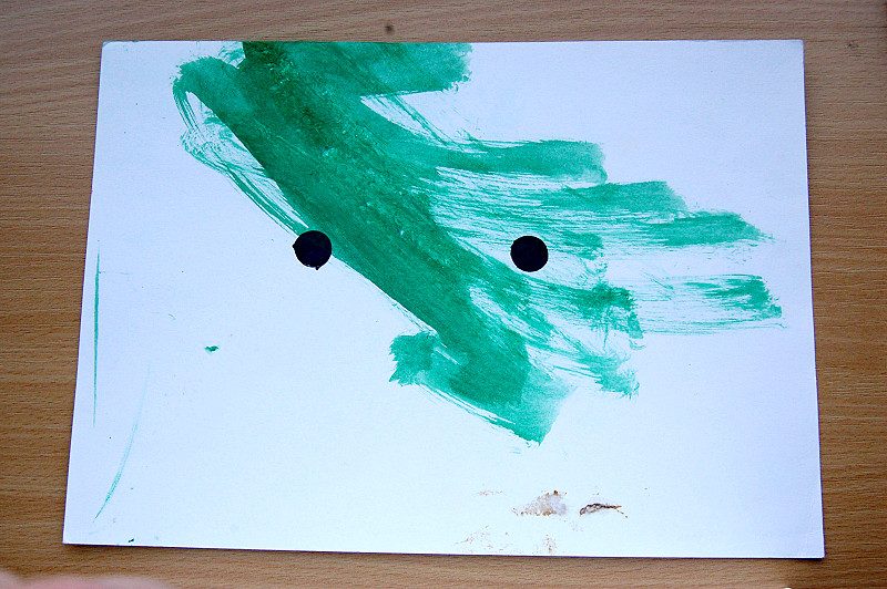 V našich testech s předkreslenou jednou centrální tečkou lidoopi směřovali svou kreslicí aktivitu kolem této tečky. Pokud byla tečka v jiné části papíru, často kreslili na opačné straně nebo naopak zdůrazňovali tuto tečku.