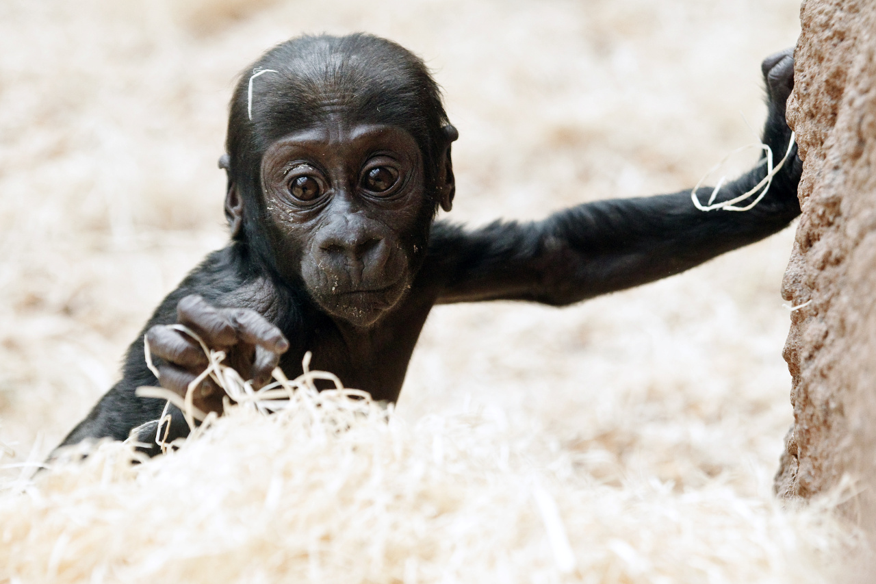 Gorilí sameček Nuru, narozený 22. prosince 2012, dělá velké pokroky. V posledních týdnech mu vylezly 4 zuby, a tak začíná zkoušet jejich možné využití.